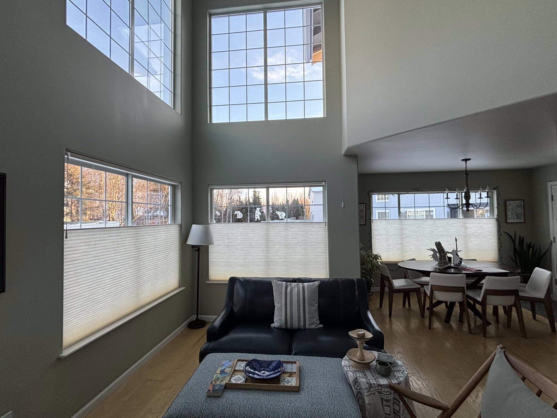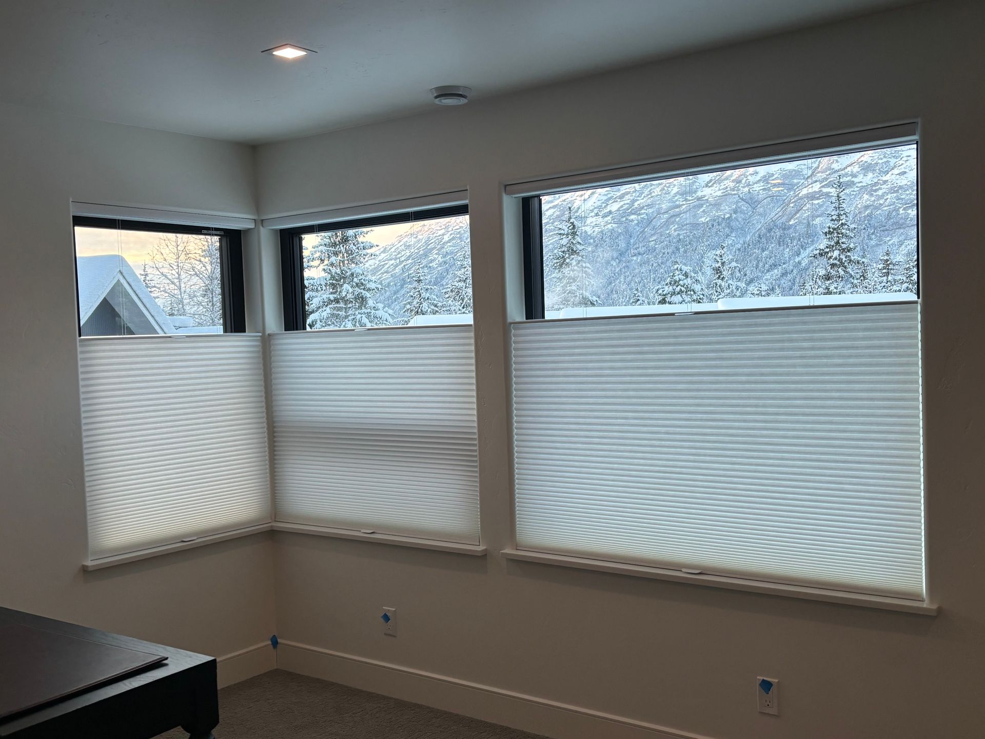 We are Alaska’s only full-service window fashion Showroom and Hunter Douglas Gallery located in Anchorage, Alaska (AK) serving thousands of Alaskans since 1995. We offer statewide shipping from Utigiagvik to Ketchikan, Alaska and proudly serve Anchorage, Eagle River, Girdwood, the Mat-Su Valley, and beyond! Our locally owned business specializes in the full selection of custom Hunter Douglas window treatments, including horizontal blinds, vertical blinds, roman shades, roller shades (including room-darkening and solar shades), sheer shadings, honeycomb cellular shades (including the premium Duette line), woven woods, plantation shutters, blackout & room darkening shades, and PowerView® motorized blinds and shades. We also offer commercial blinds and shades, custom curtains and draperies, drapery hardware, rugs, vinyl floorcloths, fabrics, and more.